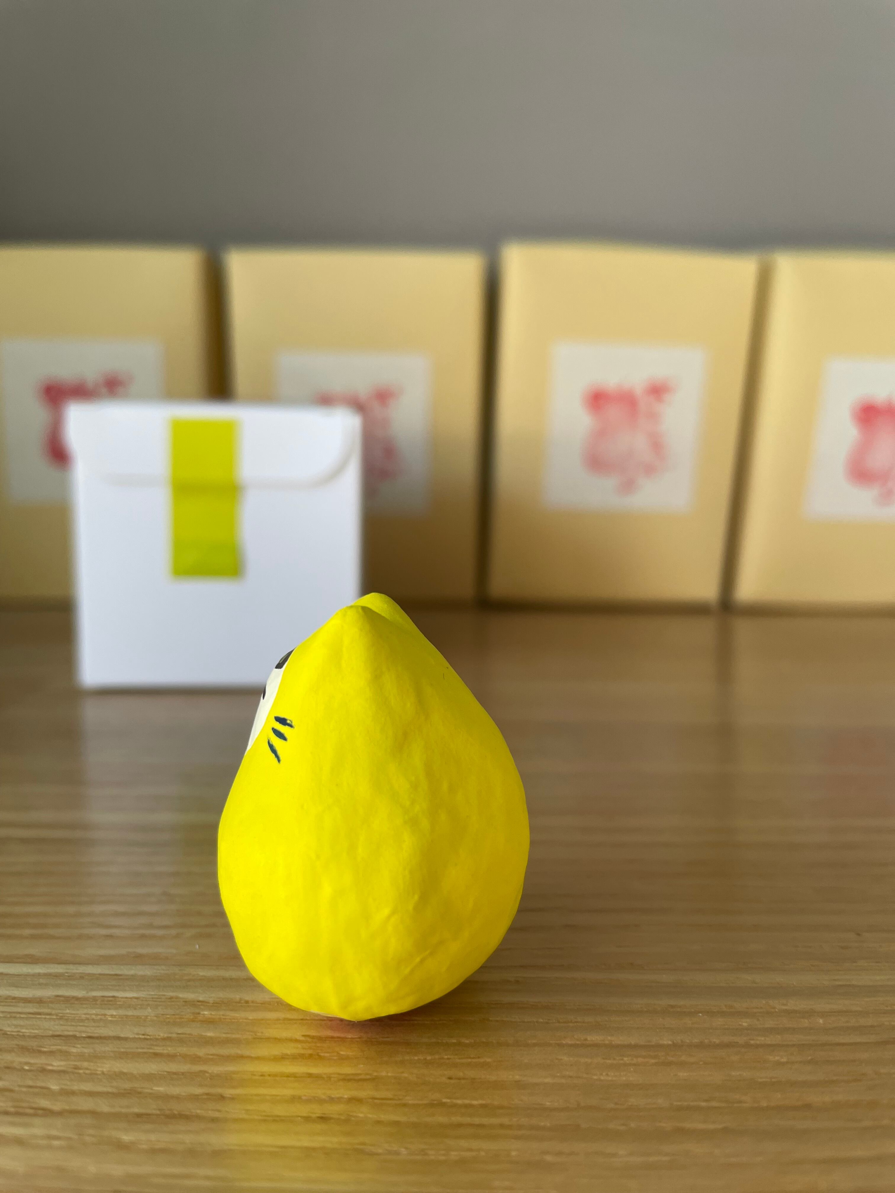 ・紙製で中が空洞のため、高いところから落とすと凹む可能性があります。