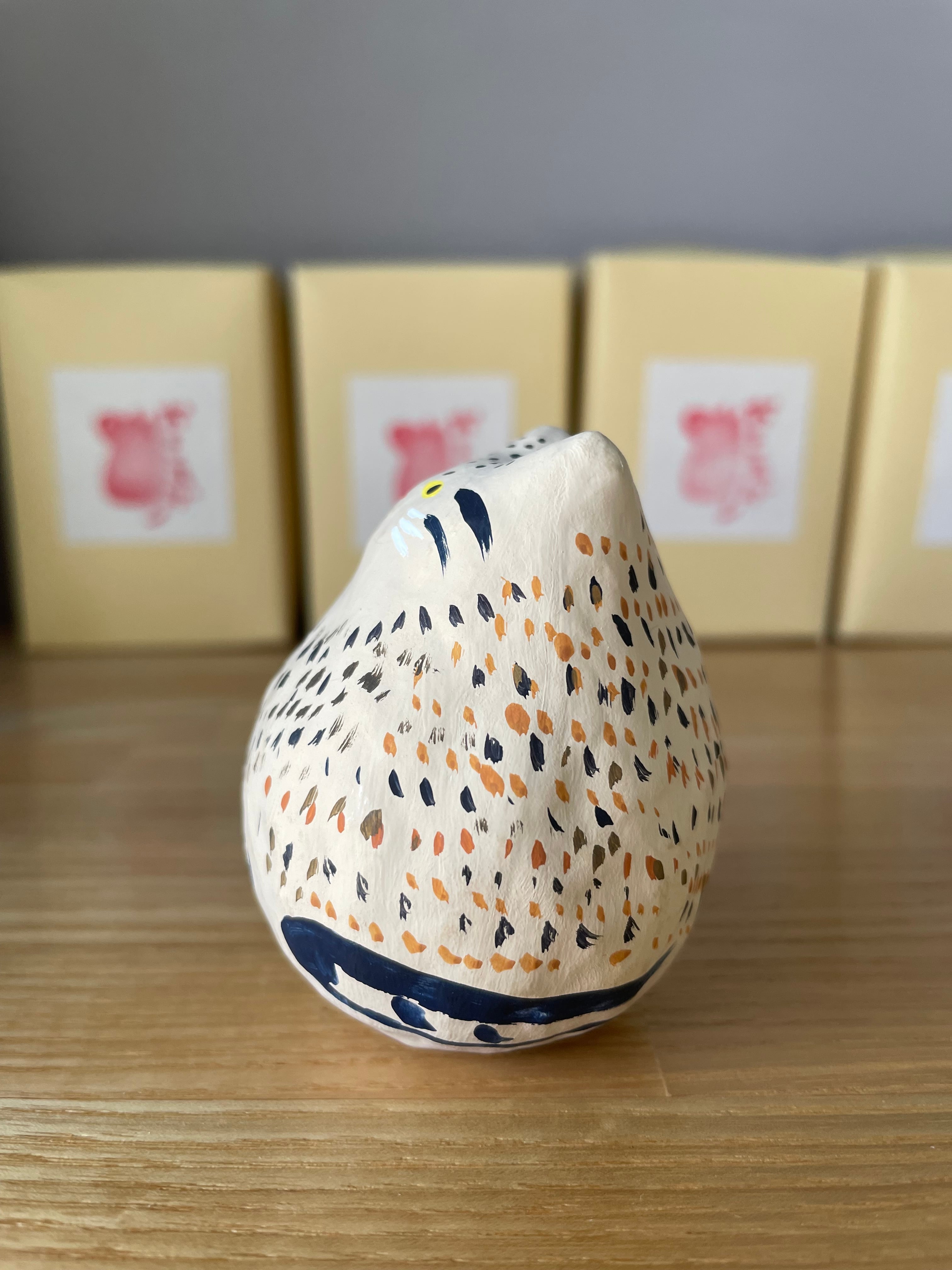 ・アクリル絵の具で着彩しているため、摩擦が加わるとツヤが出たり汚れたりする可能性があります。