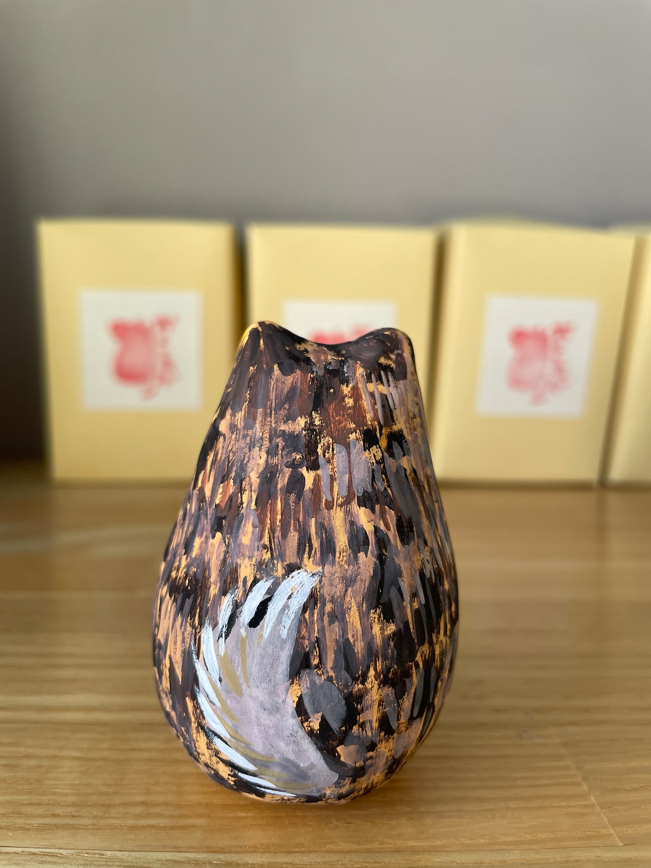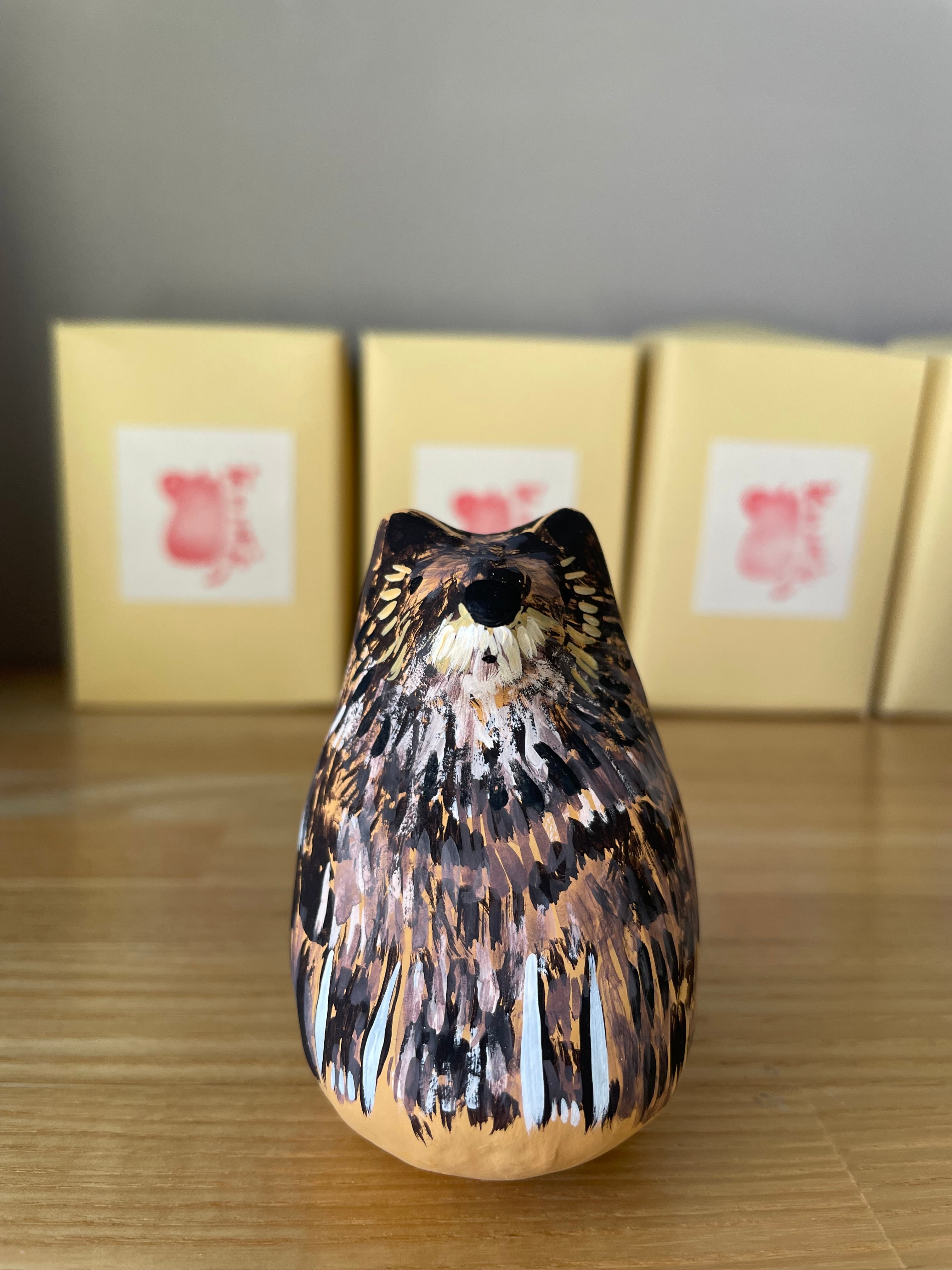 ・アクリル絵の具で着彩しているため、摩擦が加わるとツヤが出たり汚れたりする可能性があります。