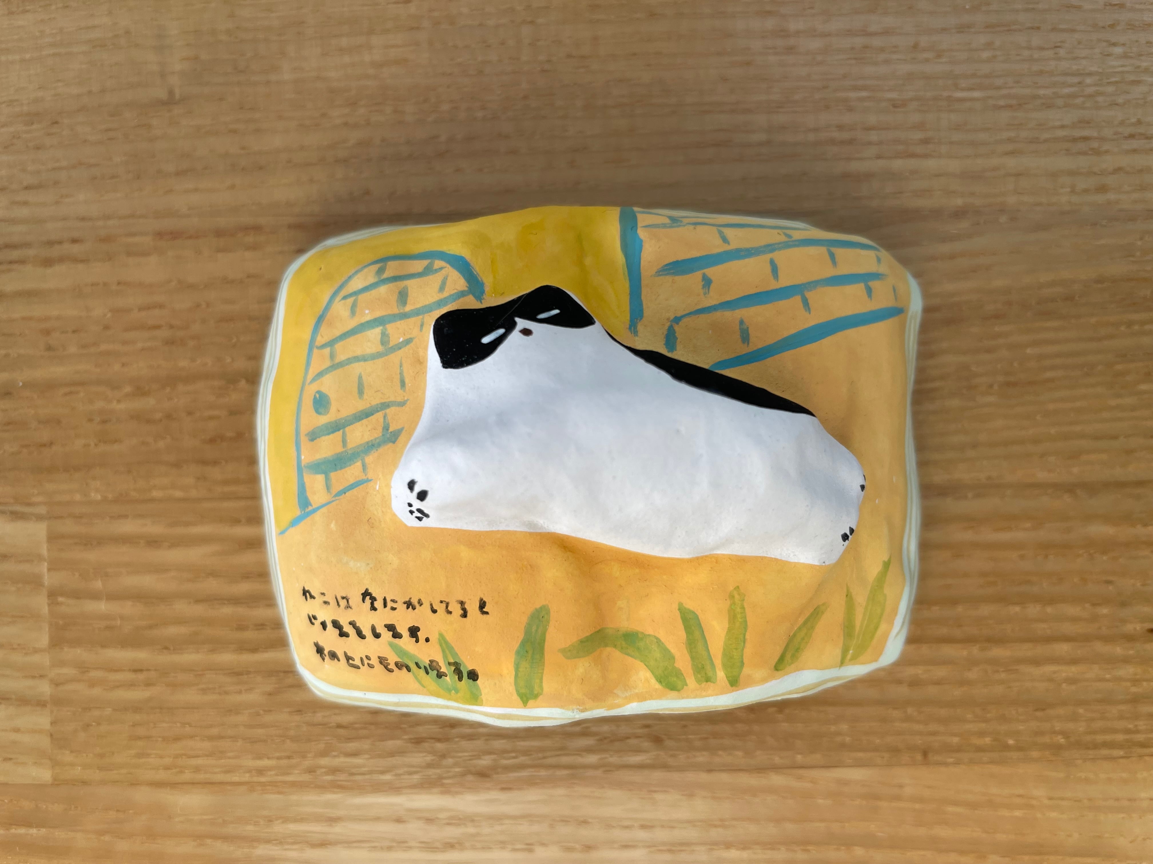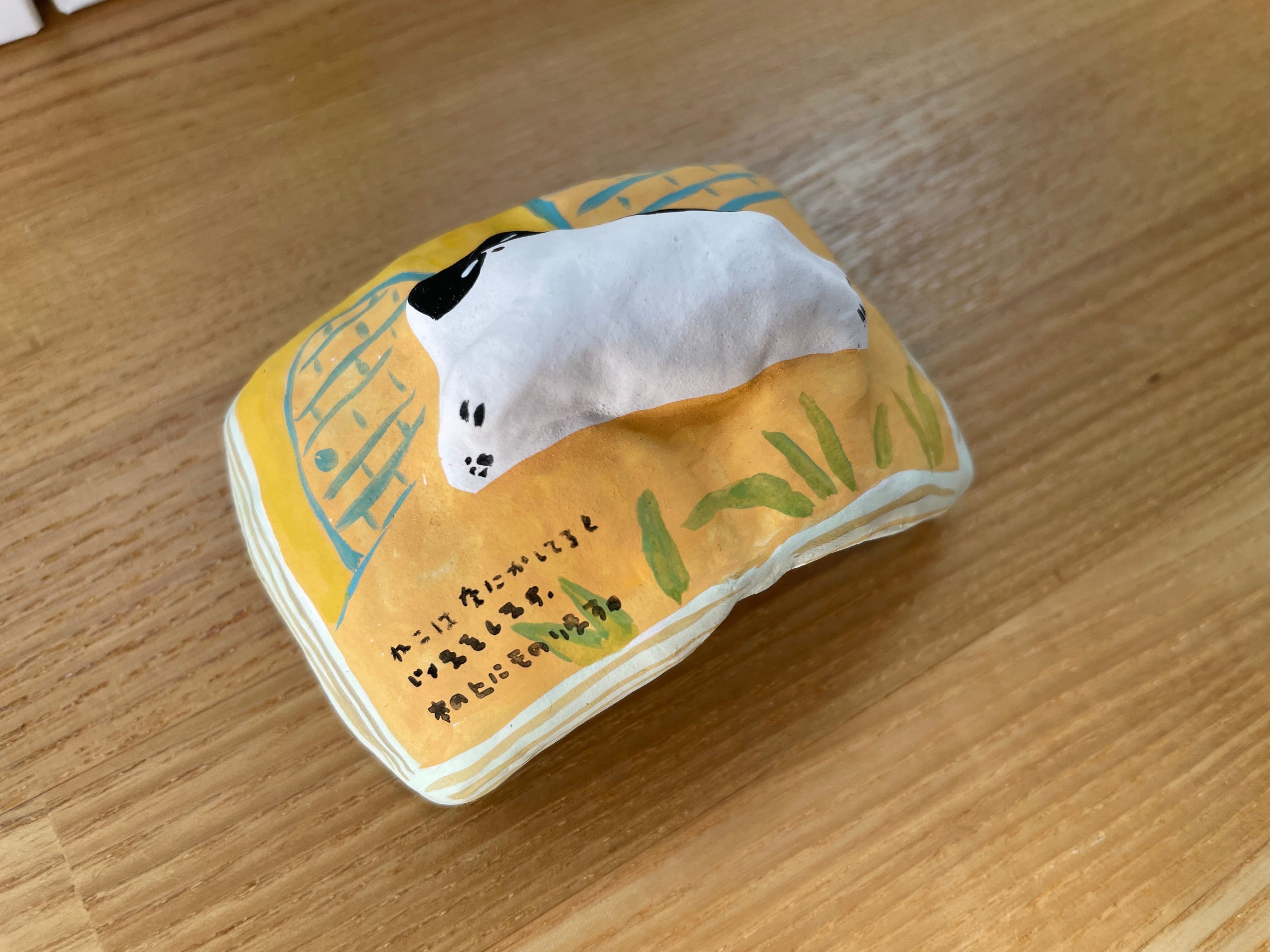 本の上のねこ。