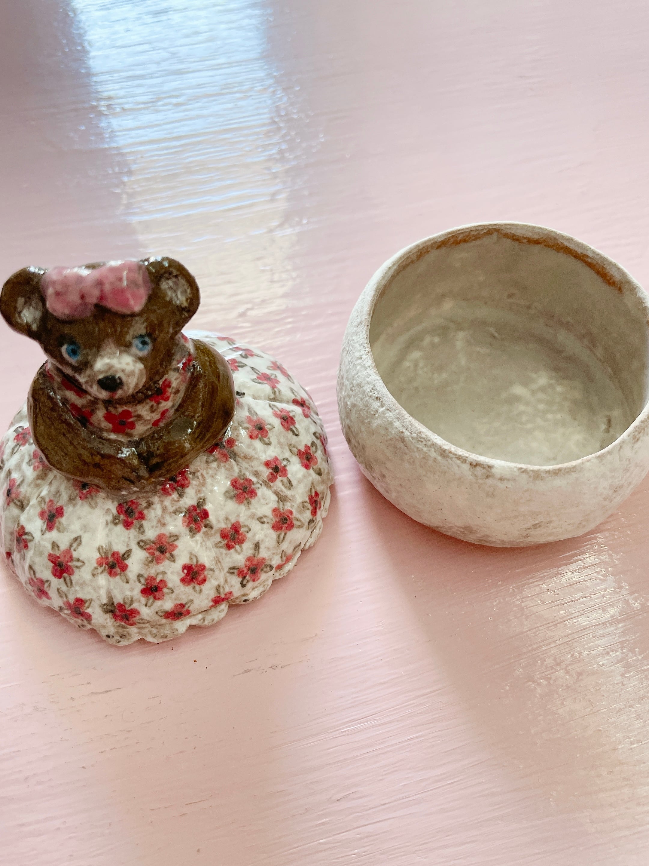 【坂口友佳子】陶器ワンピースのくま小物入れ